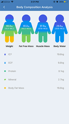 - It is differentiated product with 4 multiple frequencies which measures 20 different impedance values, and stores the data in server by wired / wireless networks, and can be accessible in real time.